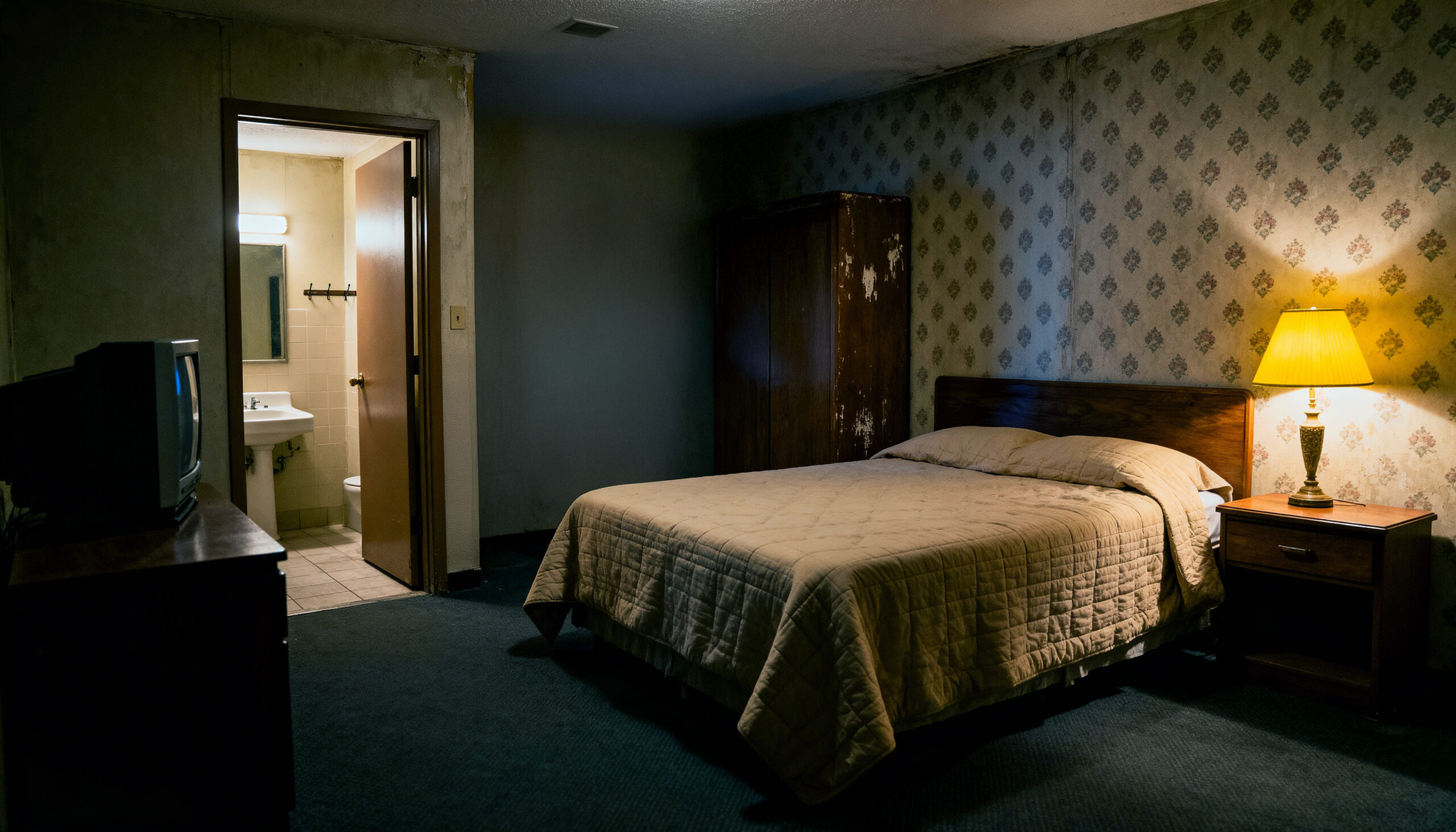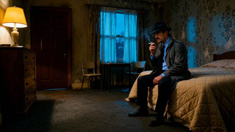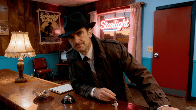 At a forgotten roadside motel, a detective checks into Room 6, chasing a rumor about something behind the closet door. Inside, silence becomes a trap — and something else decides to wear his face.